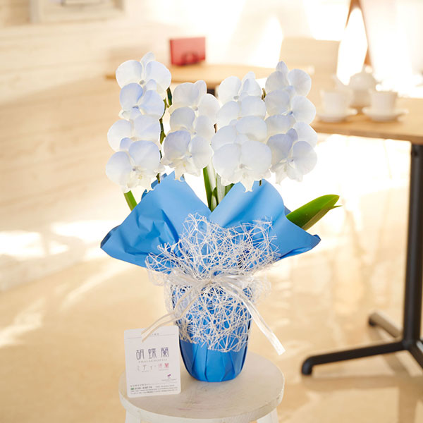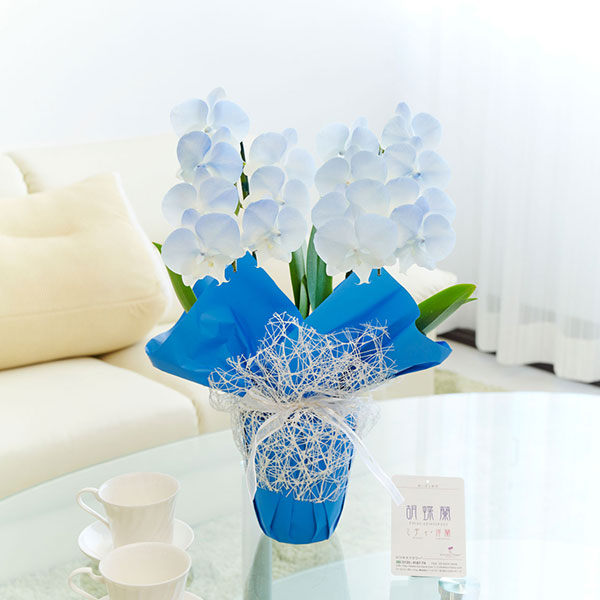 晴れ晴れとした青空を感じるような清々しくおしゃれな胡蝶蘭です。