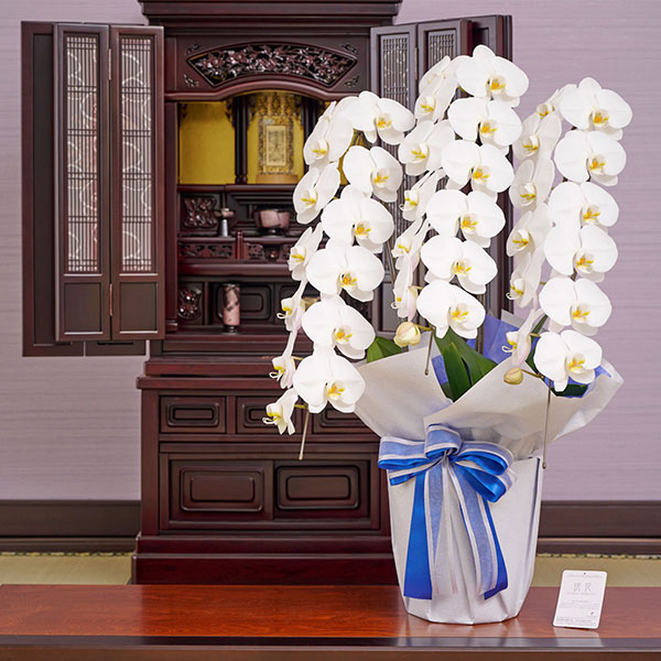 | 商品名 | 仏花 <こだわりラッピング フェアウェル>お供え用胡蝶蘭3本立 36~39輪 |