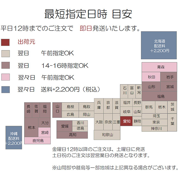 | 配送可能地域 | 全国※沖縄、一部離島や郡部は除く。 |