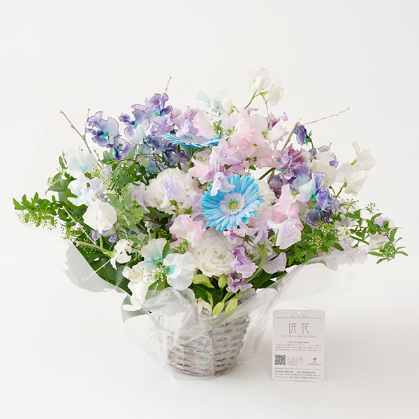 沈んだ気持ちに寄り添うようなブルーやピンクのスイートピーをミックスしたお供え花です。