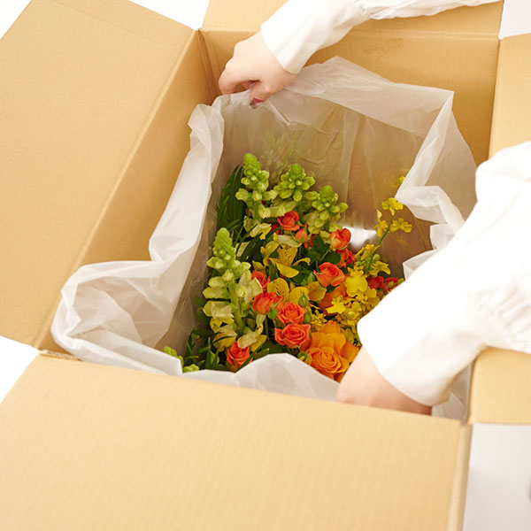 また、20枚までお花を持ち帰る際の包装紙と輪ゴムを同封することもできますので、ご希望の際はオプションのご購入をお願いいたします。