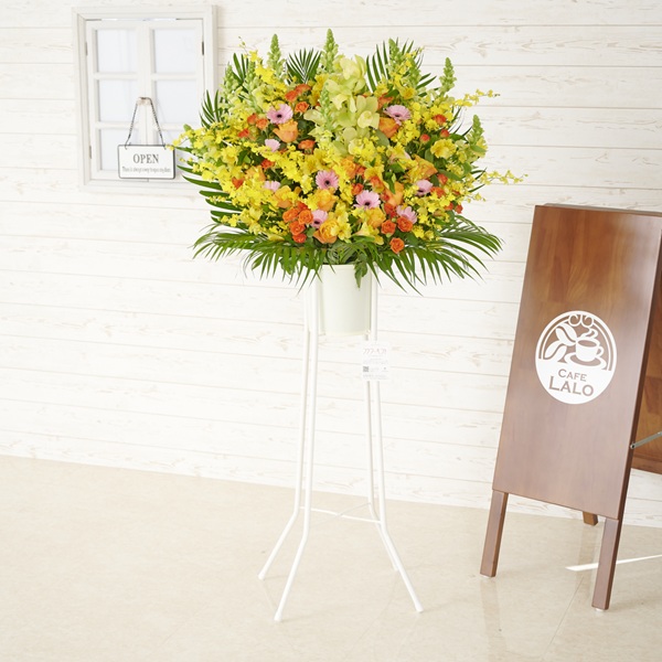 サロンやカフェの開店・移転祝いや個展開催のお祝いにおすすめのスタンド花です。