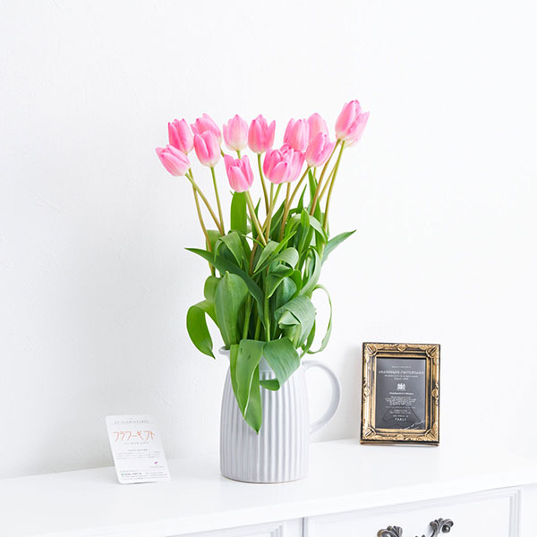 | 商品名 | 花瓶(アンティークジャグ シングル/大)とチューリップ 15本花束ブーケ(ピンク系) |