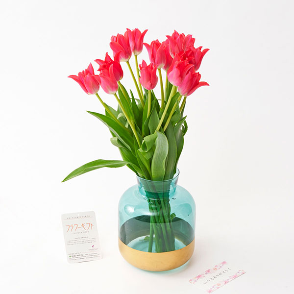 | 商品名 | 花瓶(ブルー&ゴールド)とチューリップ 15本花束ブーケ(赤系) |